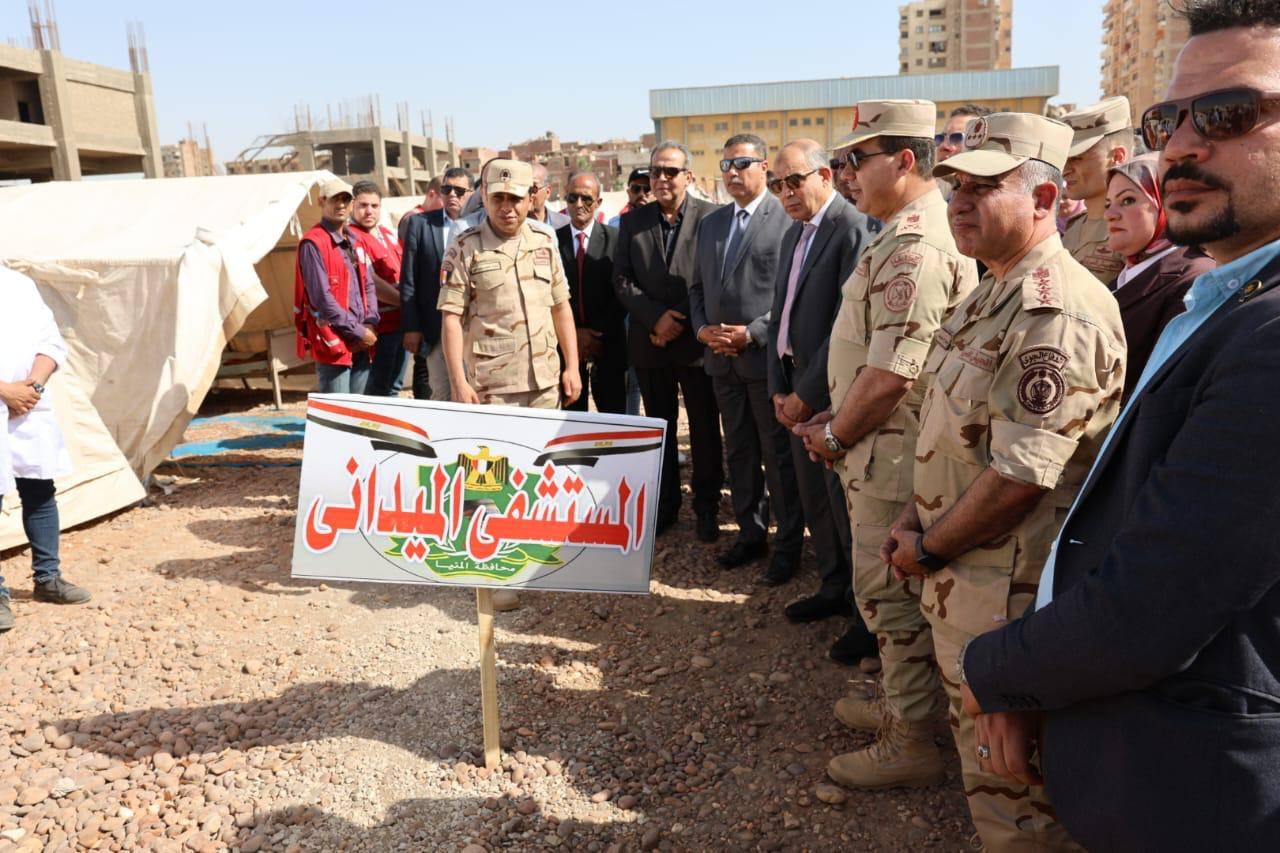 كما تفقد اللواء عماد كدوانى و اللواء أ.ح أسامة عبد الحميد معسكر الإيواء العاجل الذي تم تنظيمه بإستاد المنيا الرياضي، ضمن فعاليات التدريب ، بمشاركة مديرية الشباب والرياضة والتربية والتعليم والتضامن الاجتماعي ومديرية التموين للتأكد من مدى جاهزية المحافظة بمختلف قطاعاتها للتعامل والتفاعل مع أي موقف طارئ، حيث اوضحت مديرية الصحة جهودها في إقامة مستشفى ميداني بمشاركة هيئة الإسعاف للتدريب على كيفية التعامل مع الحالات العاجلة وتقديم الخدمة الطبية والعلاجية اللازمة خلال وقوع أي أزمة، كما أقامت مديرية التموين مطبخا لتقديم الوجبات الجاهزة.